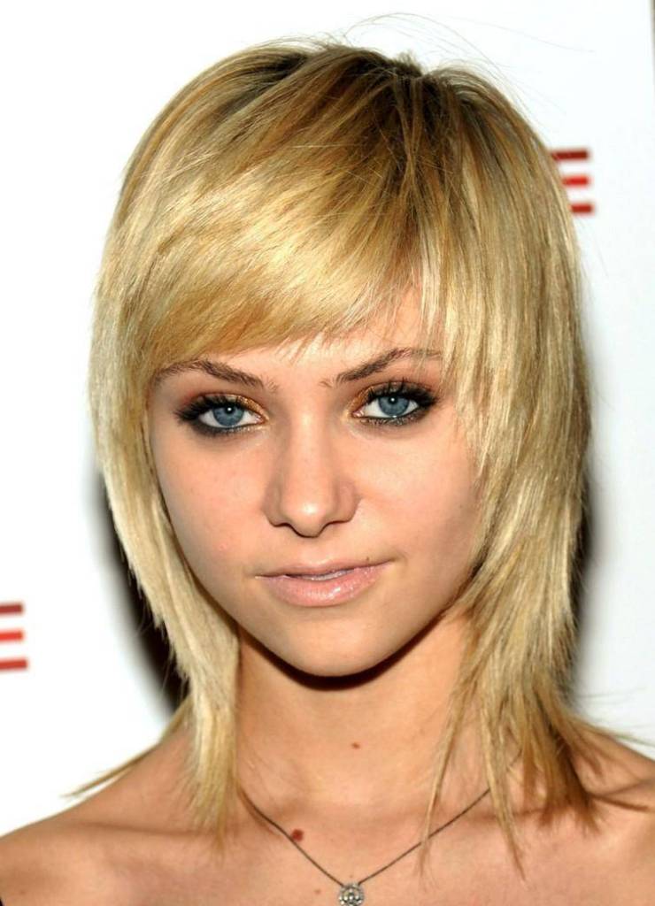 Самый востребованный тип – это каскад с косой челкой. Линии среза при этом могут быть либо мягкими и плавными, либо резкими и четкими. Это лучшая прическа для круглолицых красоток.