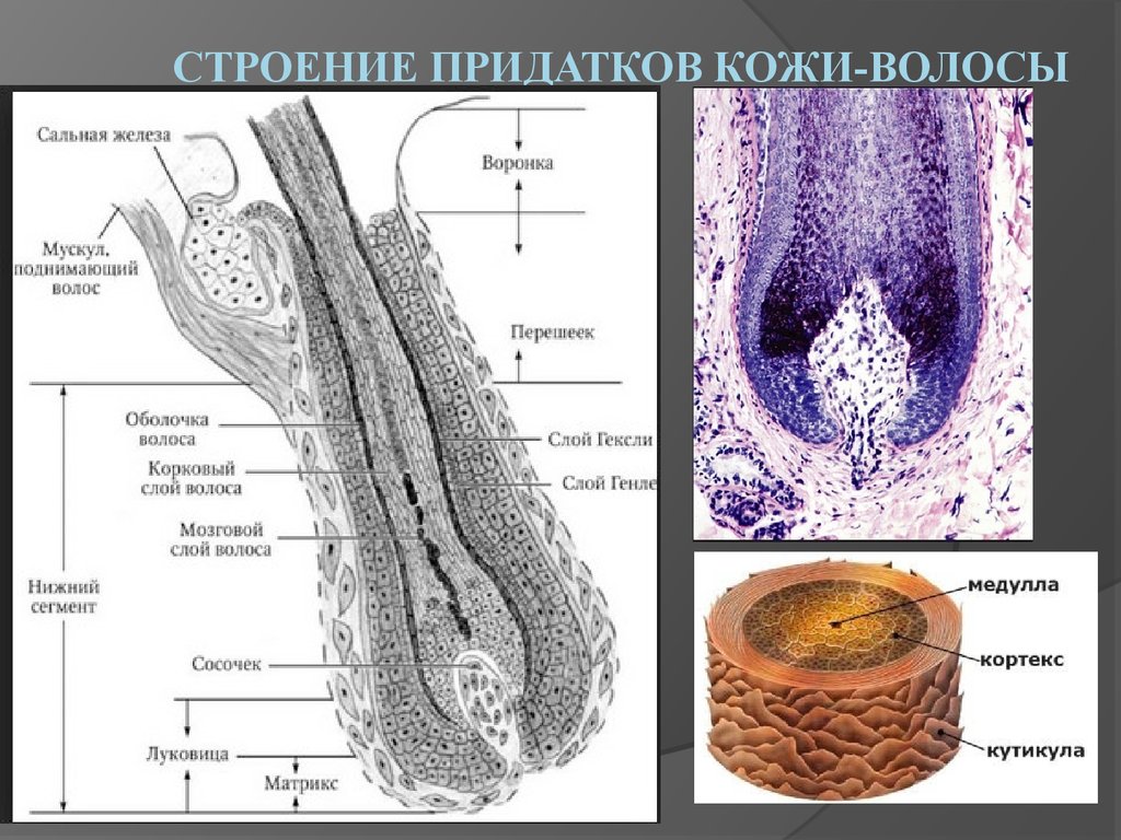 Волосы с точки зрения биологии и химии – тонкие нитевидные придатки кожи, которые состоят из белка в твердом состоянии (кератина), а также содержат пигменты, липиды, микроэлементы и воду.