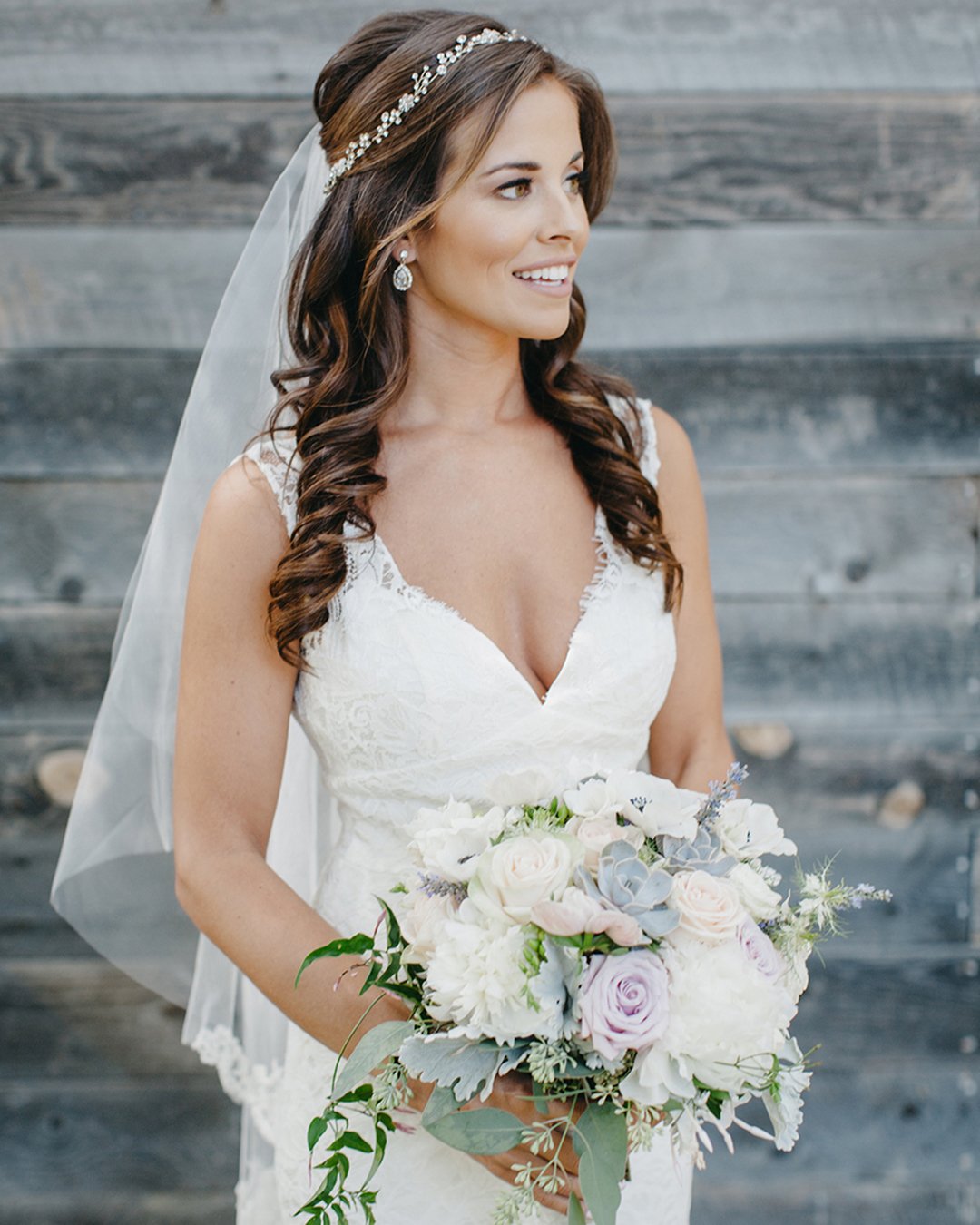 Для распущенных волос нет каких-либо конкретных требований, касающихся длины, поэтому к такому варианту могут прибегнуть невесты с длинными волосами или с волосами до плеч.