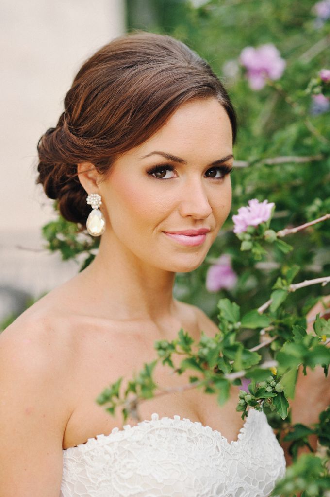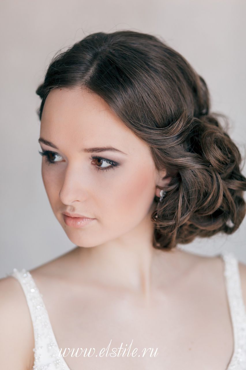 - невестам с гладкими волосами придадут очарования небольшие локоны и завитки. Например, частично можно волосы собрать вверх, а к низу оставить распущенными. Или же создать на голове романтический пучок, основание которого отлично украсит диадема;