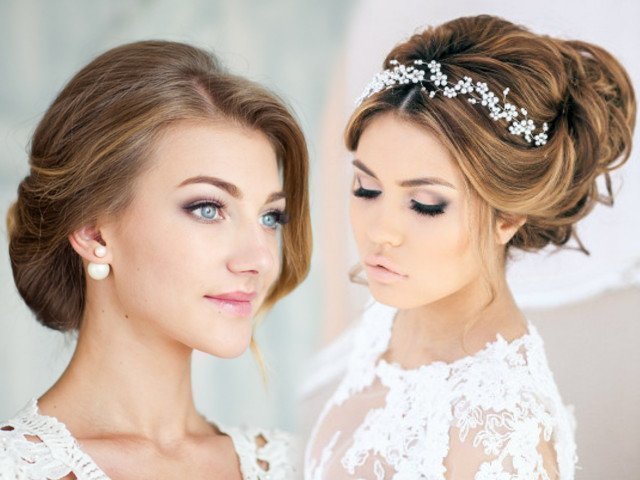 - прежде чем выбрать какой-либо вариант, мастер внимательно изучит внешние данные клиентки, состояние ее волос, поинтересуется в каком платье она будет на торжестве и какой свадебный атрибут она предпочитает: диадему или фату;