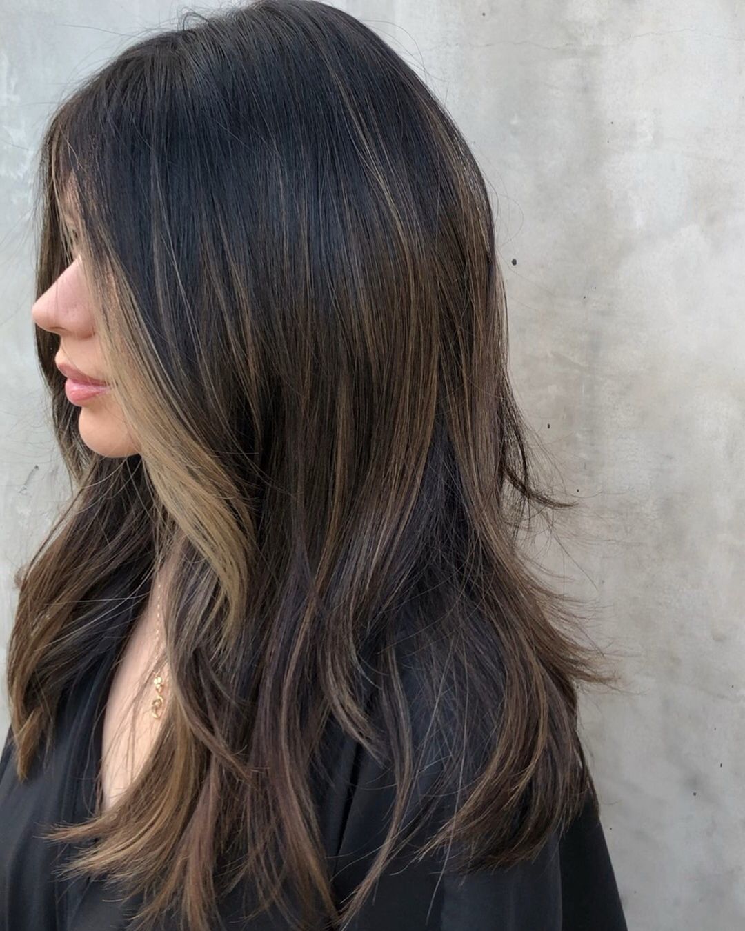 Балаяж на черные прямые волосы