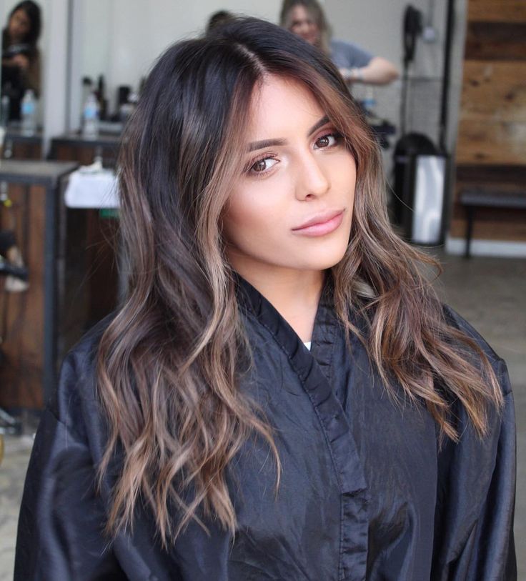 Этот цвет выглядит так же привлекательно, как и звучит. Это также доказывает, что черные волосы с коричневыми бликами действительно могут хорошо сочетаться. Чтобы получить этот прекрасный переход, убедитесь, что коричневые акценты лишь на тон светлее, чем основа.