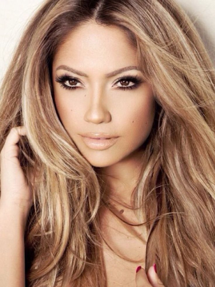 Когда речь идет о карих глазах и оливковой коже, нет ничего лучше, чем сочные карамельные блики или омбре. Нам нравится, как крупные карамельные блики подчеркивают светло-коричневые и зеленые точки в ваших глазах, делая их яркими и уравновешивая теплый оттенок кожи.