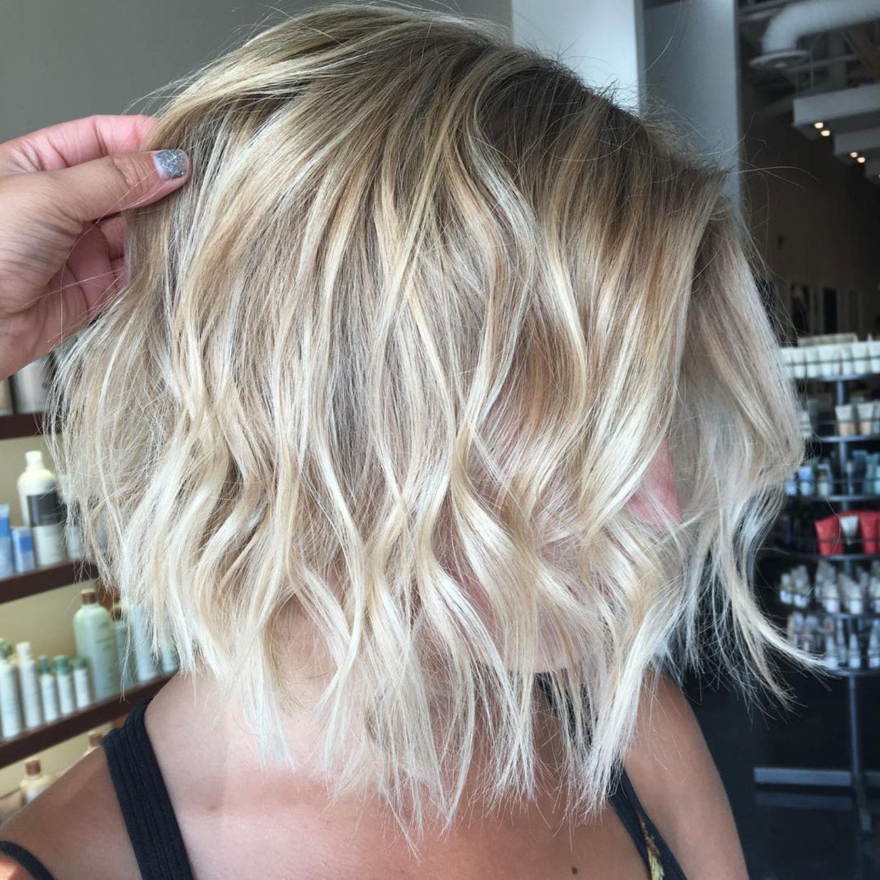 Это означает, что для более коротких стрижек будут действовать несколько иные правила, чем для коротких причесок, окрашенных вручную. Короткая стрижка одной длины, такая как тупой боб, идеально подходит для выметания, и цель состоит в том, чтобы сделать ваш выметание более объемным. Ваш колорист должен обратить внимание на внешний вид волос при выполнении балаяжа на коротком тупом бобе.
