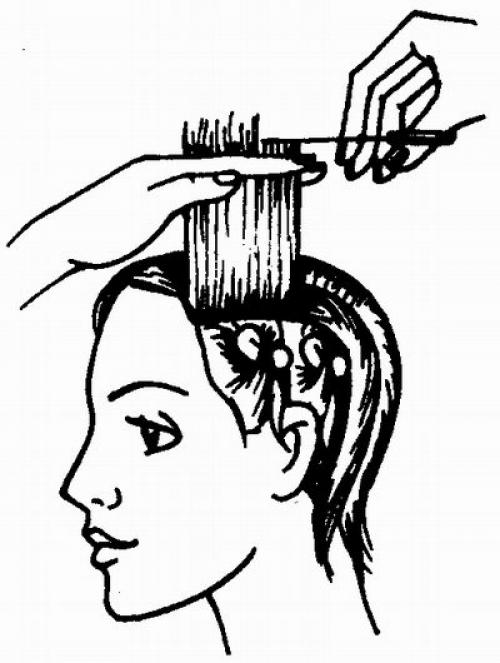 - выделяется определяющая прядь, по которой состригаются волосы темени и затылка;