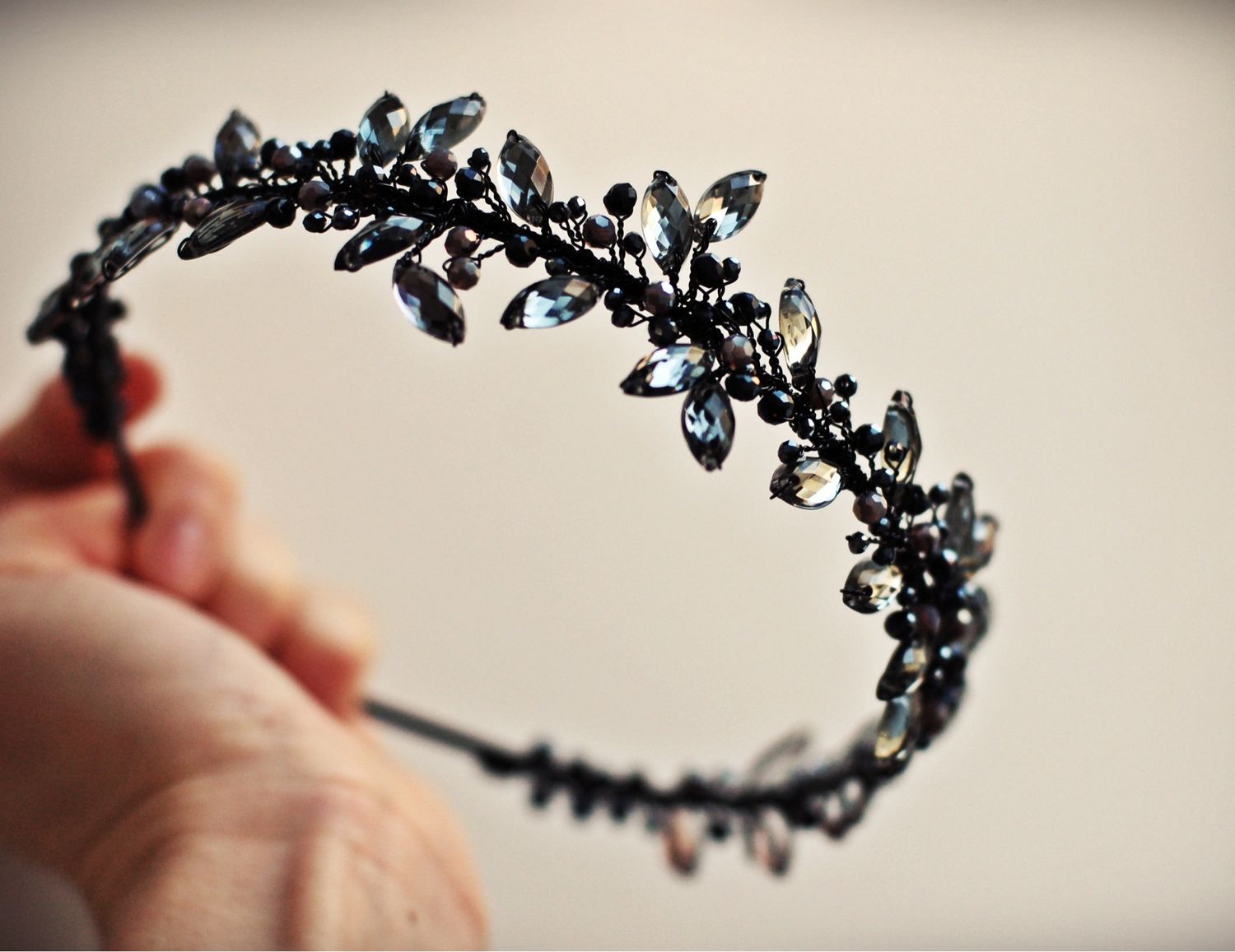 «Сажая» бусины, стразы, кристаллы на клей, можно украсить ободок, большую или маленькую заколку, «крабик», гребешок и так далее. Прочным клеем можно приклеивать декор прямо на заколку/ободок, или сначала оформить её/его тканью, замшей, кожей.
