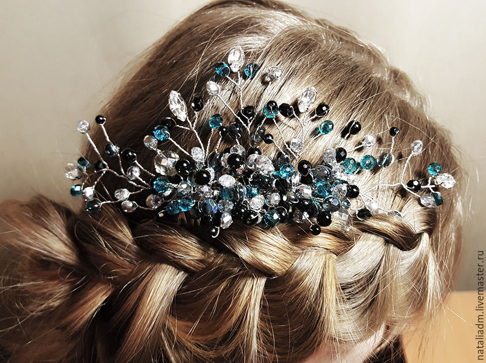 На основание гребешка приклейте несколько бусин, маскируя нитки. Готово!