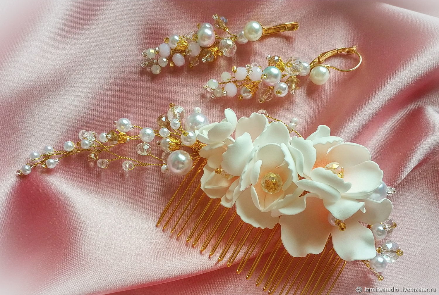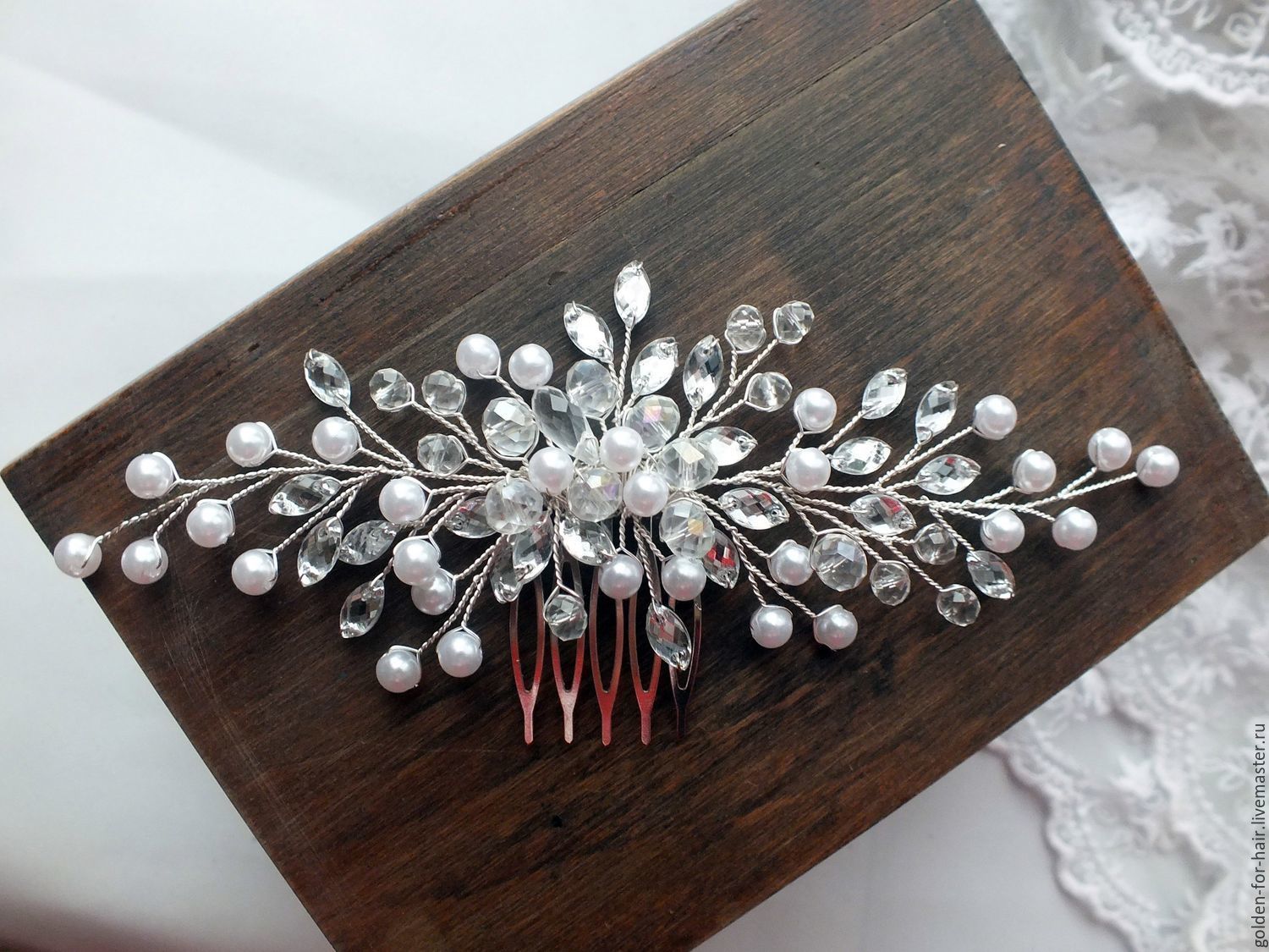 Украшение для волос из нитей бусин под жемчуг: мастер-класс