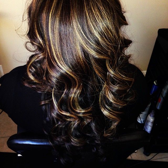 черные волосы с темно-коричневыми и карамельными бликами
