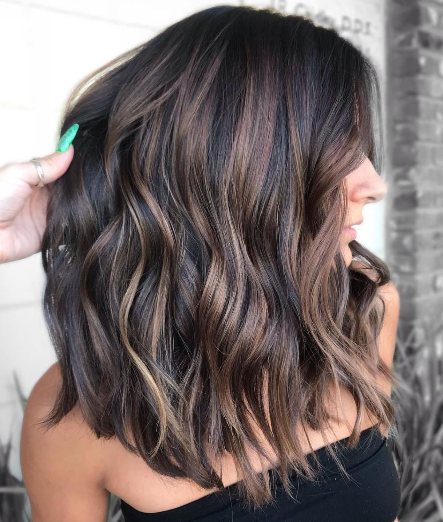 темные балаяжные волосы с размерами