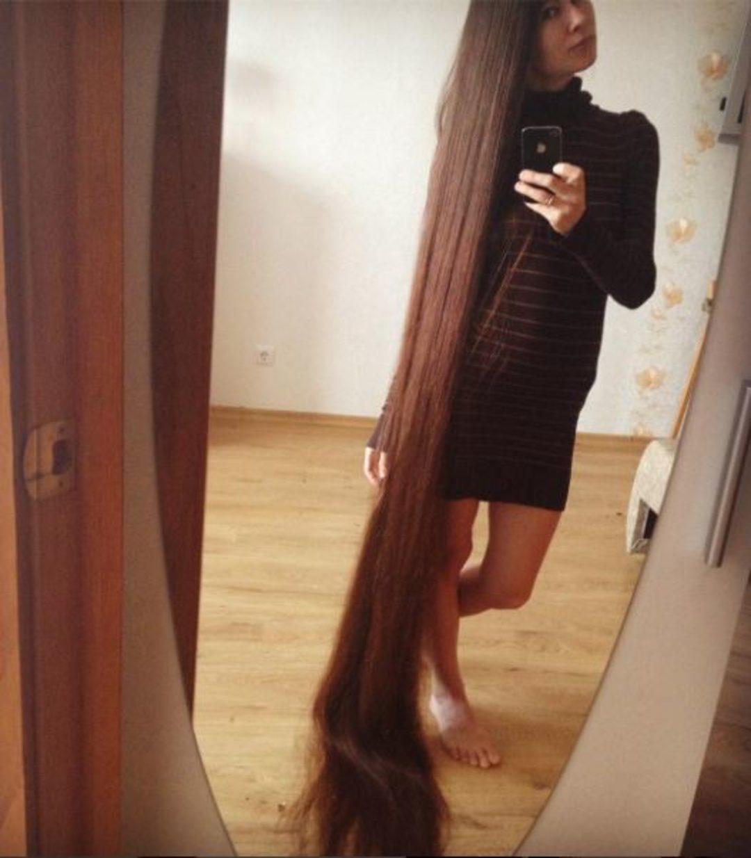 «Год назад мне стало интересно — отрастут ли волосы до пола? Причём я хочу отрастить их в нормальном качестве и планируют подравнивания волос, чтобы срез был плотнее. Как только этого добьюсь, или оставлю такую длину, или состригу до середины голени. Но длиннее, чем до пола, не хочу растить однозначно. Куда уж длиннее-то?», — говорит Юля.