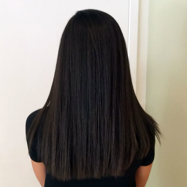 Прямой срезна средние чёрные волосы