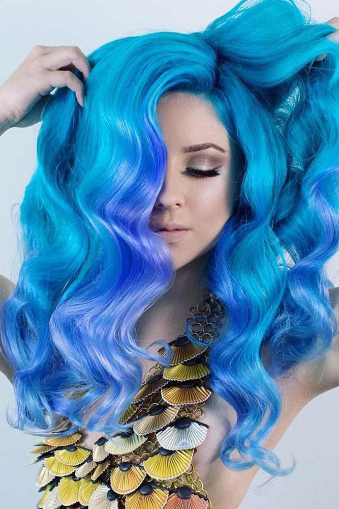 Большинство волос русалки склоняются к оттенкам зеленого, но это еще одна причина нарушать традиции. Ледяной синий оттенок, который позволяет блондинке просвечиваться под ним, кажется современным и модным, а не китчевым.