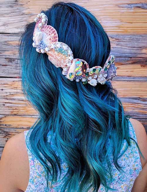Обратите внимание на то, как наслаждаться волосами русалки, тренд, который распространяется на все волосы. У вас может быть стойкий эффект или легкий оттенок цвета, который держится на несколько дней. А еще они могут окрасить волосы целиком или просто мелировать или окрасить кончики, все зависит от того, какой русалкой вы хотите стать.