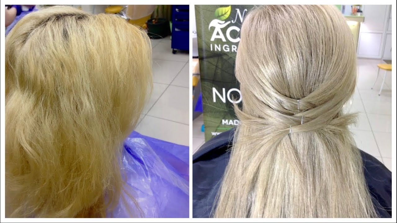 нейтрализацию желтизны на осветленных волосах в салоне, так как вам