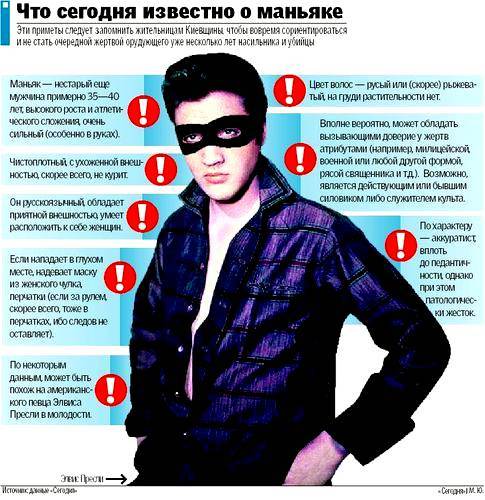 В фильме довольно много кровавых сцен. Лустиг не прячет убийства за кадром, а щедро разбрызгивает «томатный сок» по всем декорациям. При этом его маньяк не имеет какого-либо особенного, излюбленного орудия убийства. То он душит жертву собственными руками, то орудует ножом, а иной раз в ход идет и огнестрельное оружие. Неизменным остается лишь ритуал со скальпом и манекеном. А вот обнаженной натуры в «Маньяке» практически нет, что довольно странно, учитывая, что две предыдущие работы Лустига «Нарушение Клаудии» (1977) и «Горячий мед» (1978) были довольно пикантными.