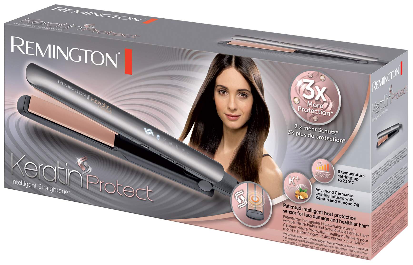 Стайлер Remington S 2002 для укладки длинных и вьющихся волос из серии выпрямителей для волос Remington Protect & Shine – это здоровый блеск прямых волос, легкость и простота укладки, и надежная защита волос во время и после использования. Защитный слой турмалина и тефлоновой ткани, покрывающий керамические пластины прибора, предохраняет волосы от перегрева во время укладки и, кроме того, сокращает ломкость и сечение волос более чем в два раза.