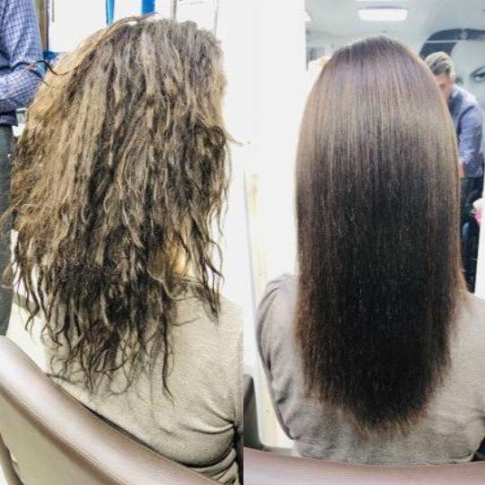 Процедура не решает проблему вьющихся или пушащихся волос, не придает глянцевый вид, потому как действует изнутри.