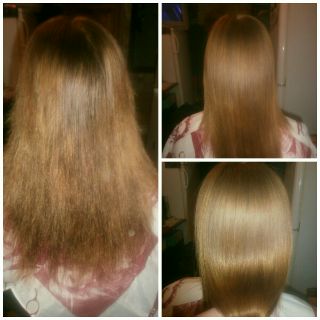 Принцип этой процедуры заключается в том, что используемый состав впитывается в структуру волоса, где он впоследствии и действует. Волосы становятся более однородными по длине.