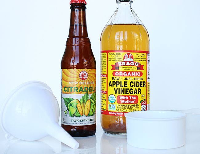 - Смешайте яблочный уксус с пивом.