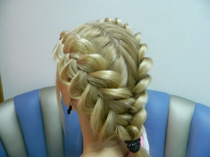 - Производим далее описанные действия вкруговую – поочередно перекладывая боковые пряди на центральную часть и не забывая добавлять к ним свободные грядки с основной шевелюры и хвоста.