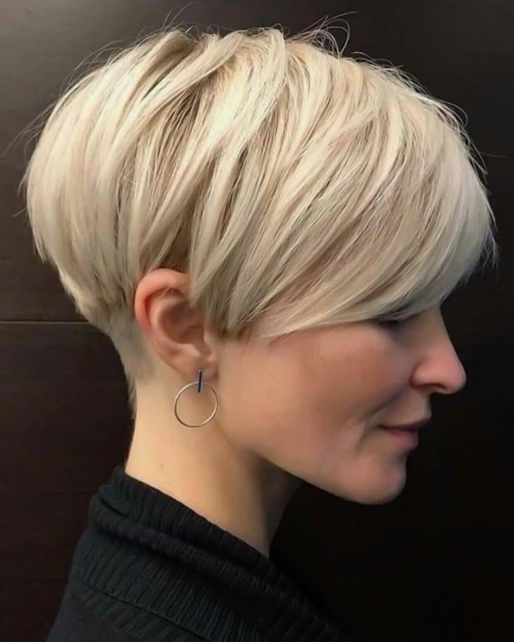 модная блондинка с короткими волосами и в черной футболке — стрижка боб stok fotoğraflar ve resimlerмодная блондинка с короткими волосами и в черной футболке