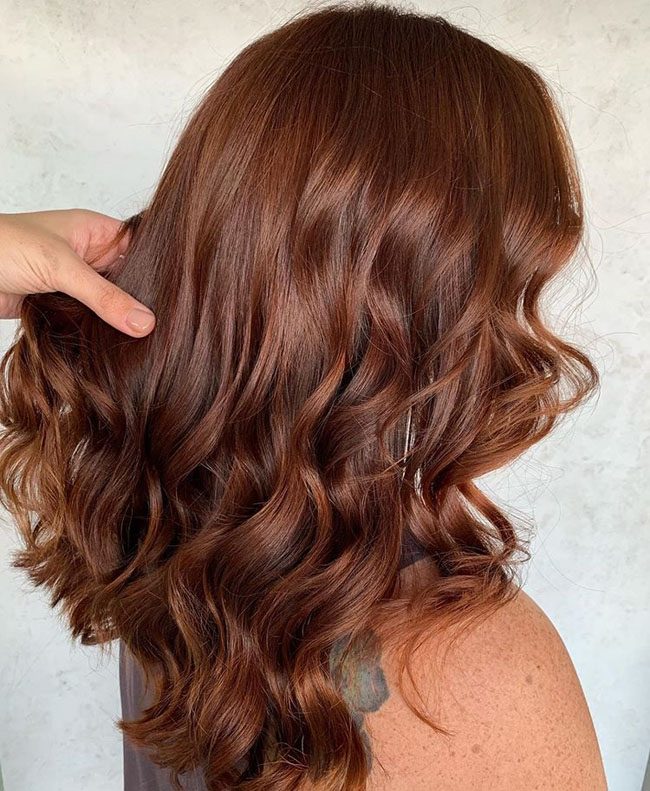 Тонкие красно-золотые оттенки этого великолепного цвета волос делают его идеальным для всех любителей рыжего, которые хотят оставаться близкими к своему естественному цвету волос. Коричневый цвет красного дерева — фаворит женщин с теплым подтоном кожи и карими глазами. Он также хорошо сочетается с карими глазами из-за того, насколько хорошо он дополняет золотой оттенок.