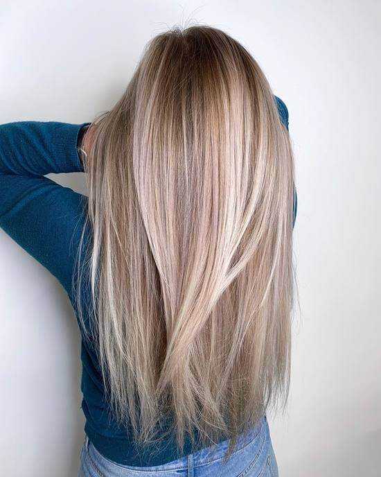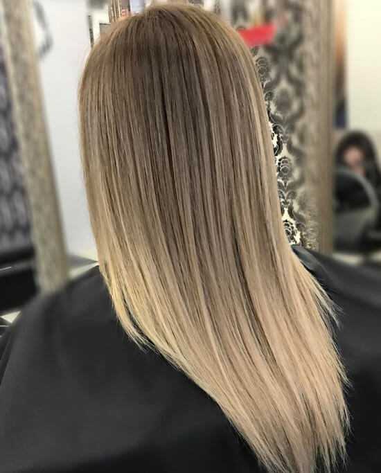 техника окрашивания коротких и длинных светло-русых волос, балаяж прямых прядей по всей длине в домашних условиях