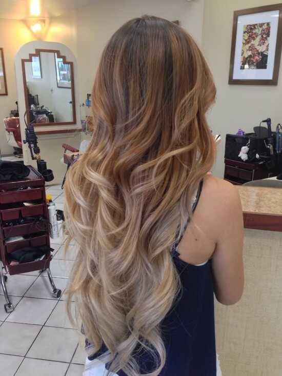 При правильно выполненном парикмахерами окрашивании в технике баляж, грани между натуральным цветом и краской вдоль роста волос визуально стираются.