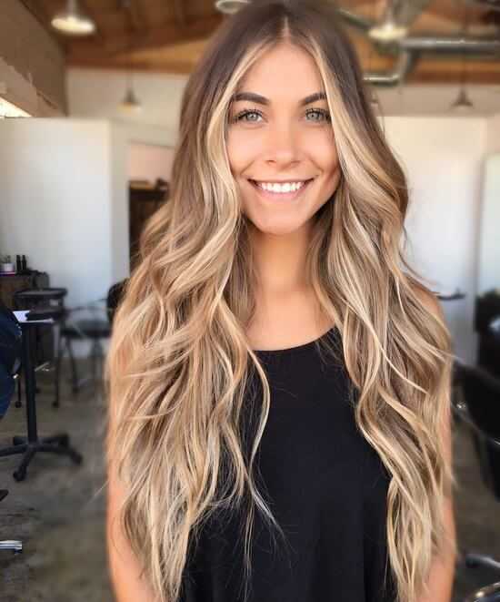 Если вы хотите причёску из здоровых и напоенных солнцем волос, балаяж — для вас! Длинные русые волосы — хороший материал для этого окрашивания.