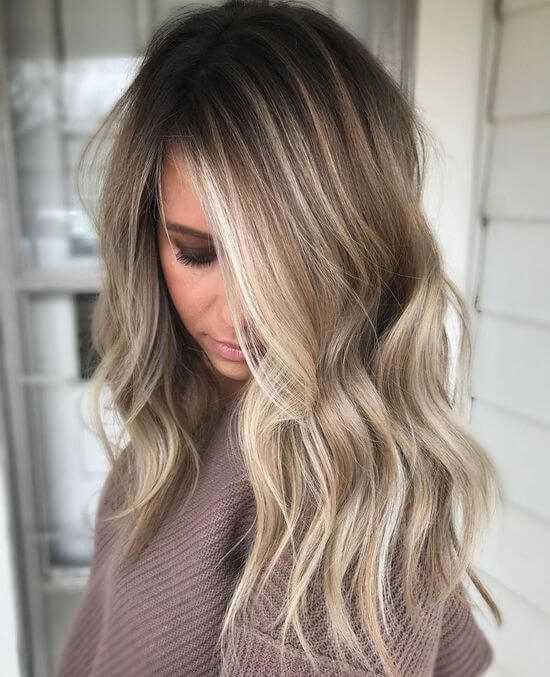 Подчеркнуть естественную красоту светло-русых волос позволит балаяж с холодными или теплыми оттенками блонда. Прекрасно будут смотреться платиновые, пепельные, медовые и золотистые тона – выбор должен зависеть от собственного цветотипа.
