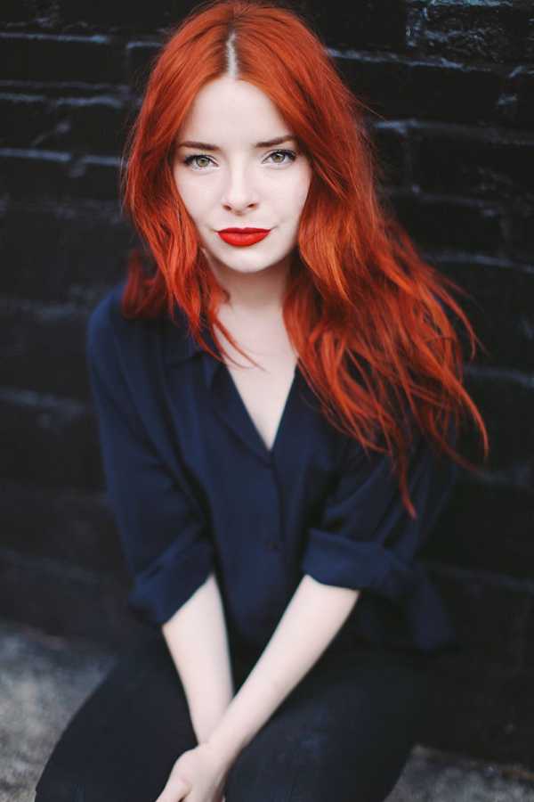 - Ярко-рыжий. Именно этот цвет считается ярким, дерзким и насыщенным. Идеально подходит обладательницам темных глаз. Насыщенность представляемого оттенка не имеет границ. Это может быть светлая медь либо солнечный апельсин.