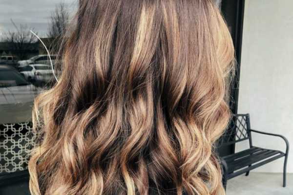 Специалисты часто выбирают коньячные, кофейные, бежевые и светло-каштановые оттенки для создания контраста на полотне волос.