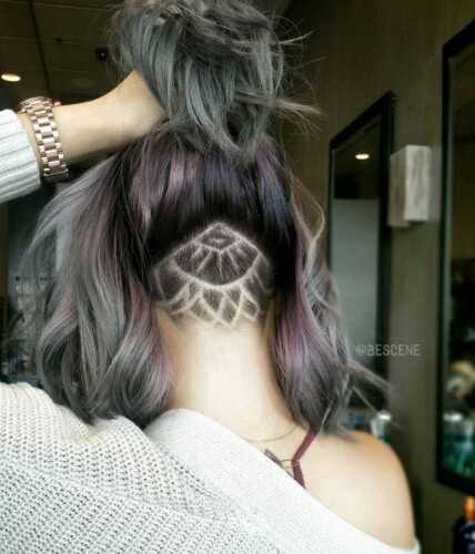 Также в тренде hair tattoo, а именно сбривание висков в виде определенного рисунка с имитацией татуировки. При такой стрижке девушки обычно зачесывают волосы на одну сторону, чтобы продемонстрировать красивый рисунок и сделать шевелюру объемнее. Но если вдруг понадобится замаскировать эту деталь, ее всегда можно прикрыть волосами.
