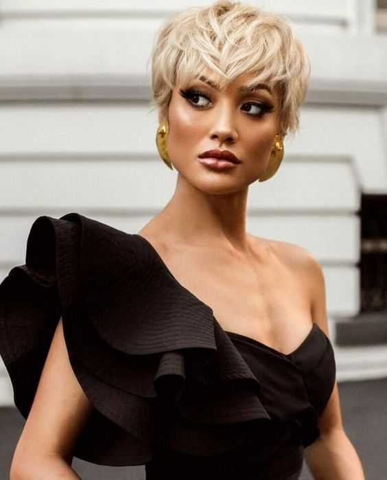 - Пикси. Эта прическа не утрачивает своей актуальности на протяжении нескольких сезонов подряд за счет невероятно стильного внешнего вида. Однако она содержит рваные филированные элементы, поэтому не подойдет девушкам с чересчур тонкими волосами.