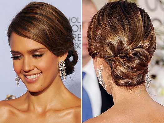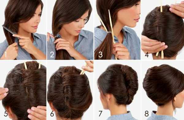 Потрясающая укладка на каждый день и для особых случаев. Причёска исполняется на чистые волосы. Для начала необходимо нанести мусс, равномерно распределив его по всем локонам. Затем сделать начёс в области затылка и слегка пригладить его щёткой. Зачесать все пряди назад, сформировать хвост. После необходимо аккуратно закрутить хвост в тугой жгут и уложить его петлей, спрятав все кончики внутрь. Зафиксировать пучок шпильками и лаком.