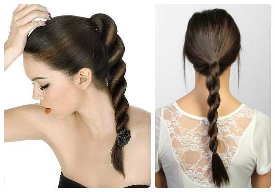 Простой вариант прически для офиса и, пожалуй, самый подходящий – вывернутый хвостик. Достаточно 10 минут, чтобы получить красивую укладку. Какие красивые хвосты на длинные волосы самые популярные, можно посмотреть в данной статье.