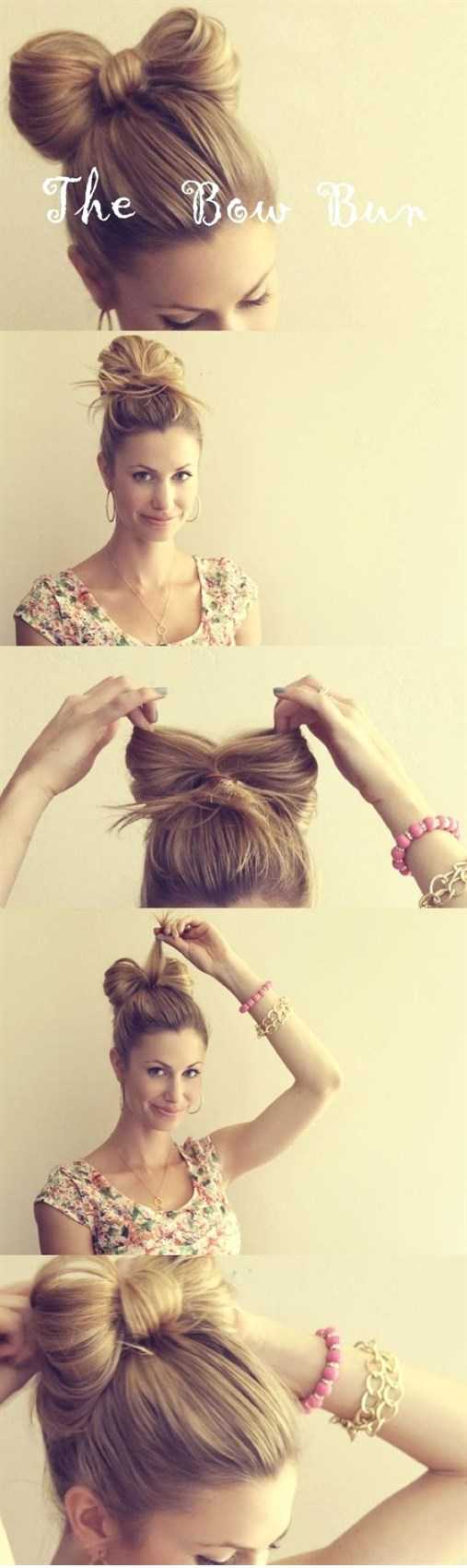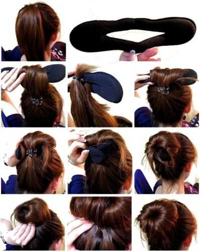 Эта укладка по праву занимает лидирующие позиции среди повседневных причёсок на средние волосы. Девушки любят её за простоту исполнения. Для начала необходимо собрать высокий хвост и зафиксировать его резинкой. Затем протянуть хвост сквозь бублик и равномерно распределить пряди. Далее можно подобрать концы под сам бублик и зафиксировать причёску шпильками, либо взять ещё одну резинку в цвет волос и надеть её поверх прядей, а концы обернуть вокруг основания и закрепить невидимкой.