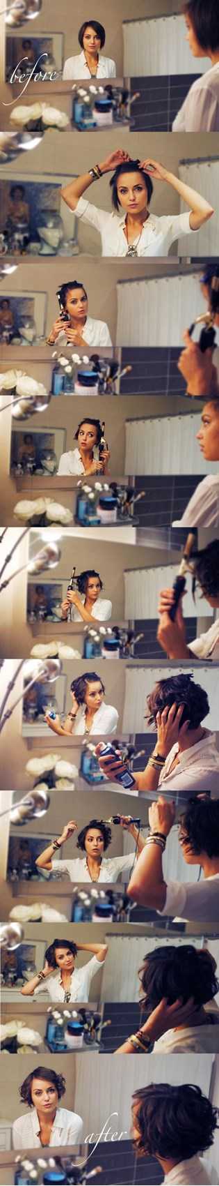 Романтичный и милый образ получится сделать при помощи этой прически. Волосы для этого хорошо моют и сушат феном. Теперь понадобится плойка, которую нужно заранее разогреть, с гофре можно добавить оригинальности прическе. Берут небольшие пряди и накручивают. Когда все волосы будут накручены, можно уложить и челку. Ее слегка накручивают и придают небрежный вид. Лучше всего использовать мусс для фиксации.