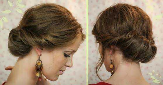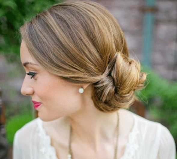 Если немного подкрутить волосы и обыграть форму пучка, то получится прекрасная прическа на любой праздник и торжество.