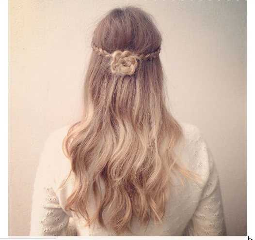 Для неё нам потребуется лента или обруч. Оденьте ленту, в затылочной части сделайте начёс. Теперь нам необходимо прядки из-под ленты/обруча завернуть, создавая иллюзию пучка. Концы боковых прядок также нужно спрятать под ленту. Согласитесь, что причёска очень романтичная?
