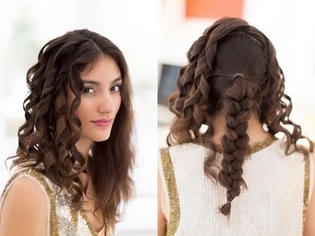 Обладательницы густых длинных волос могут просто продемонстрировать их красоту, завив локоны и распустив пряди. Чтобы получить крупные локоны, завивать нужно на крупные бигуди, предварительно нанеся на голову мусс. Для придания укладке объемности, пряди у корней нужно начесать.