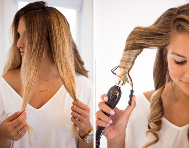 - Держа плойку вертикально, накрутите на нее прядь, и снимите инструмент после 5-7 секунд.