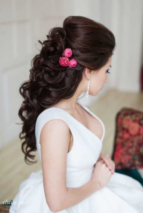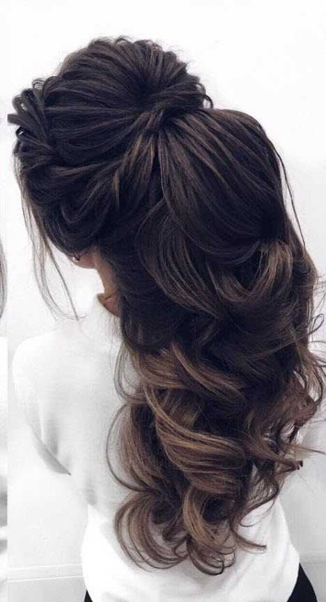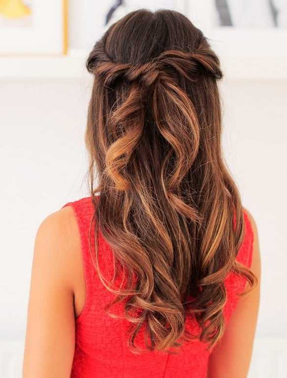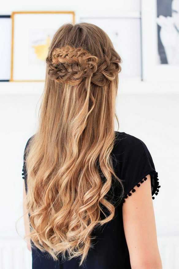 Романтичные простые прически на длинные волосы часто обыгрывают полукруг на затылке. Его можно составить из нескольких жгутов, кос или одного цельного плетения. Остальные волосы оставьте ровными или закрутите на плойку.