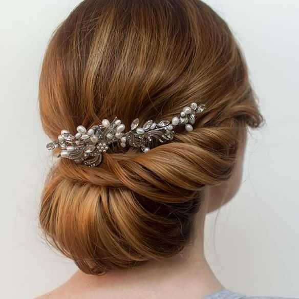 - Волосы собираем в хвост и потом закручиваем его в узел. Закалываем шпильками.