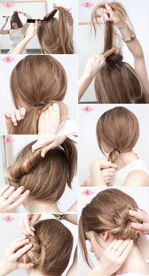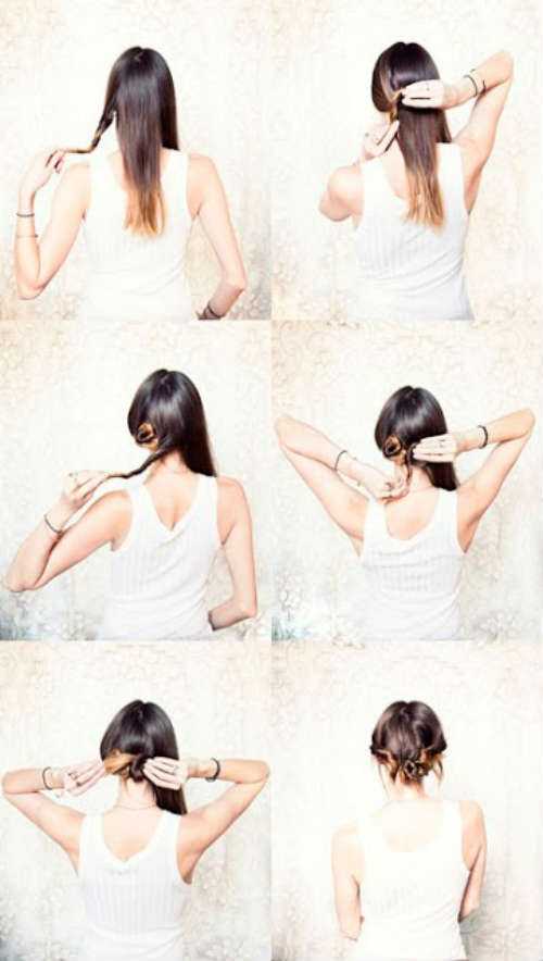Каждая девушка может делать такие прически сама себе на длинные волосы. Понадобится пара шпилек, расческа, тонкая резинка, желательно — лак.