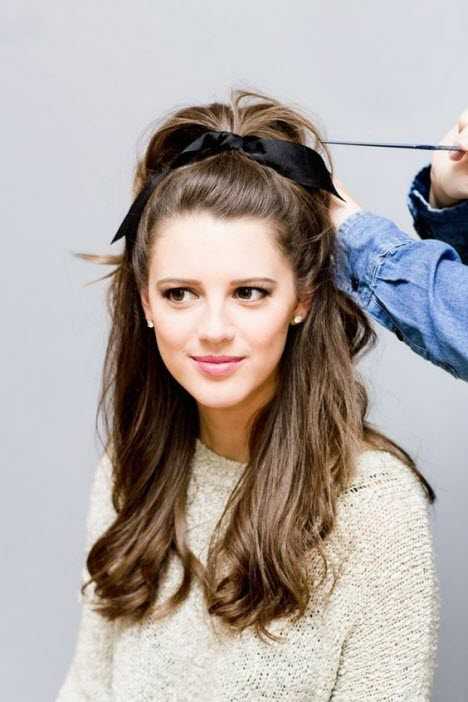 Еще одна ретро-идея, которая не потребует много времени. Нам понадобится густая расческа, лак для волос, плойка, а также лента, бандана или повязка на голову.