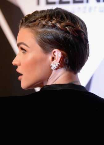 Красиво украсит стрижку плетение. Конечно, сделать косичку на коротких волосах будет сложно. Понадобится терпение и ловкие руки.