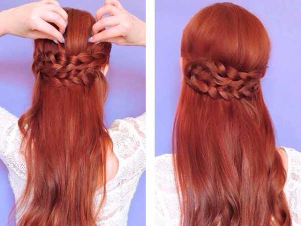 Такая изящная укладка отлично подойдет даже на свадьбу. Особенно нарядно она выглядит с завитыми локонами.